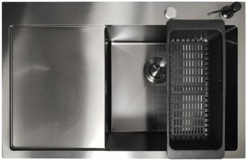 Кухонная мойка Saniteco 6550-L (с сифоном, дозатором и коландером)