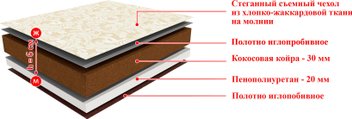 наполнитель: пенополиуретан/кокосовая койра/хлопок