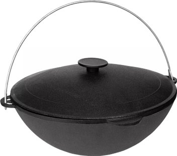 Казан Davr Metall Узбекский чугунный с крышкой, круглое дно (12 л)